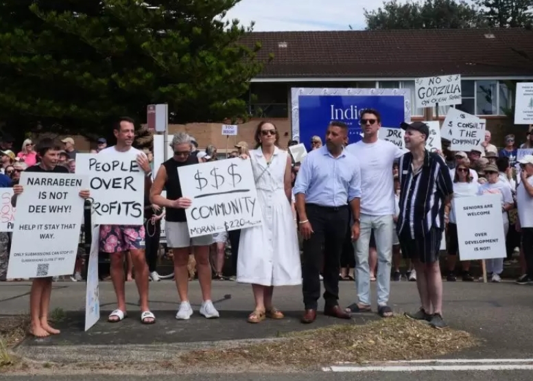 Manly Observer: Hundreds of Narrabeen locals took to Ocean Street this afternoon to protest the proposed development of a retirement complex with fears it could mark the beginning of an unwanted precedent.