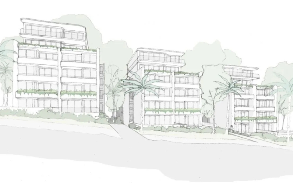 A State Significant Development Application (SSDA) has been lodged for five blocks of land at 159-167 Darley Street West, Mona Vale, proposing three towers at six storeys each, for 81 residential apartments (main image).